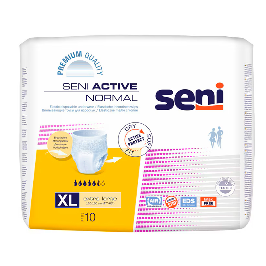 Chilotul absorbant Seni Active Normal, reprezinta solutia ideala pentru persoanele active cu probleme de incontinenta medie si grava, deasemenea pentru pacientii in reabilitare fizica.