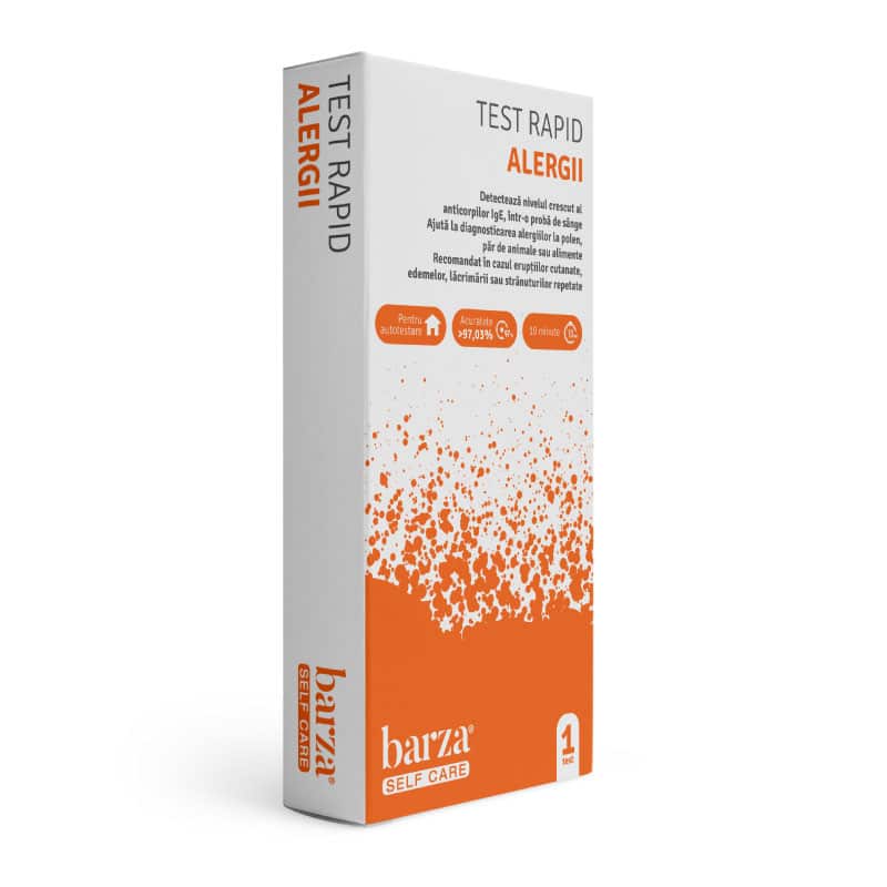 ● test rapid ce detectează nivelul crescut al anticorpilor IgE, într-o probă de sânge;