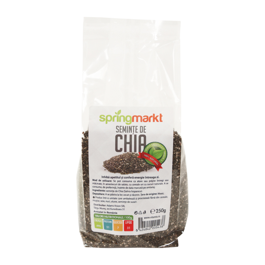 Semintele de chia Springmarkt sunt o alegere excelenta pentru cei care doresc sa adauge un plus de nutrienti in dieta zilnica. Originare din Mexic, aceste seminte mici, dar puternice, sunt recunoscute pentru continutul lor bogat in fibre, proteine, acizi grasi Omega-3 si antioxidanti.