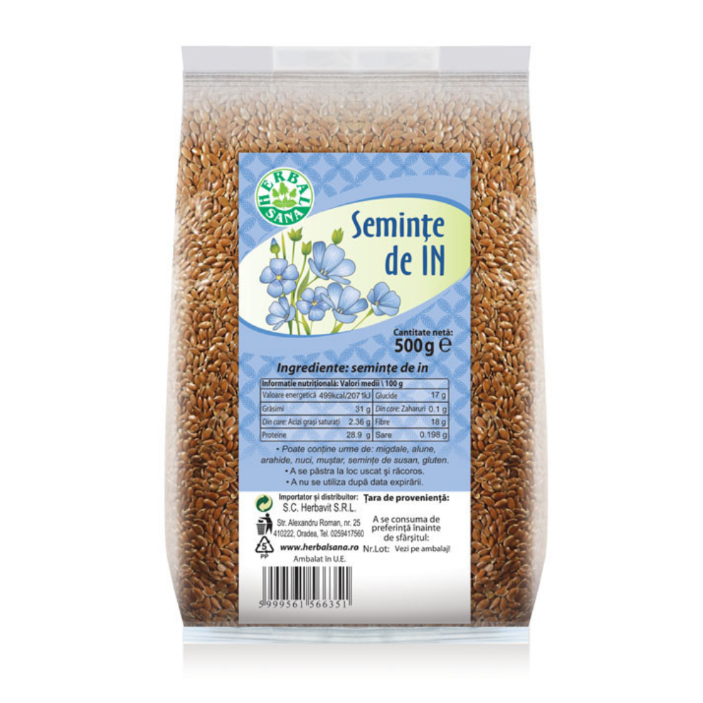 Seminte de in, 500 g, HerbalSana - Herbavit.