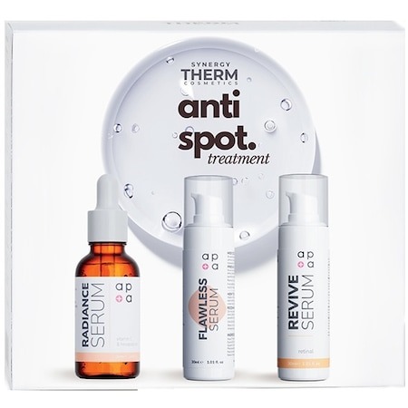 Set Anti Spot Treatment, Synergy Therm, Serum Radiance Vitamina C Lipozomala, 30 ml + Serum de fata Apa Flawless, 30 ml + Serum Revive Retinal 0.05%, 30 ml, Synergy Therm