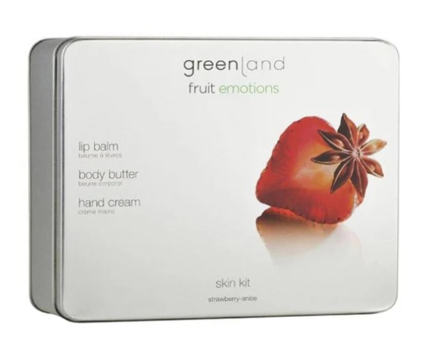 Setul de ingrijire corporala cu extracte naturale de capsuni si anason din gama Greenland Fruit Emotions, cuprinde trei produse cu un parfum subtil si fructat de capsuni coapte combinat cu note picante de anason: