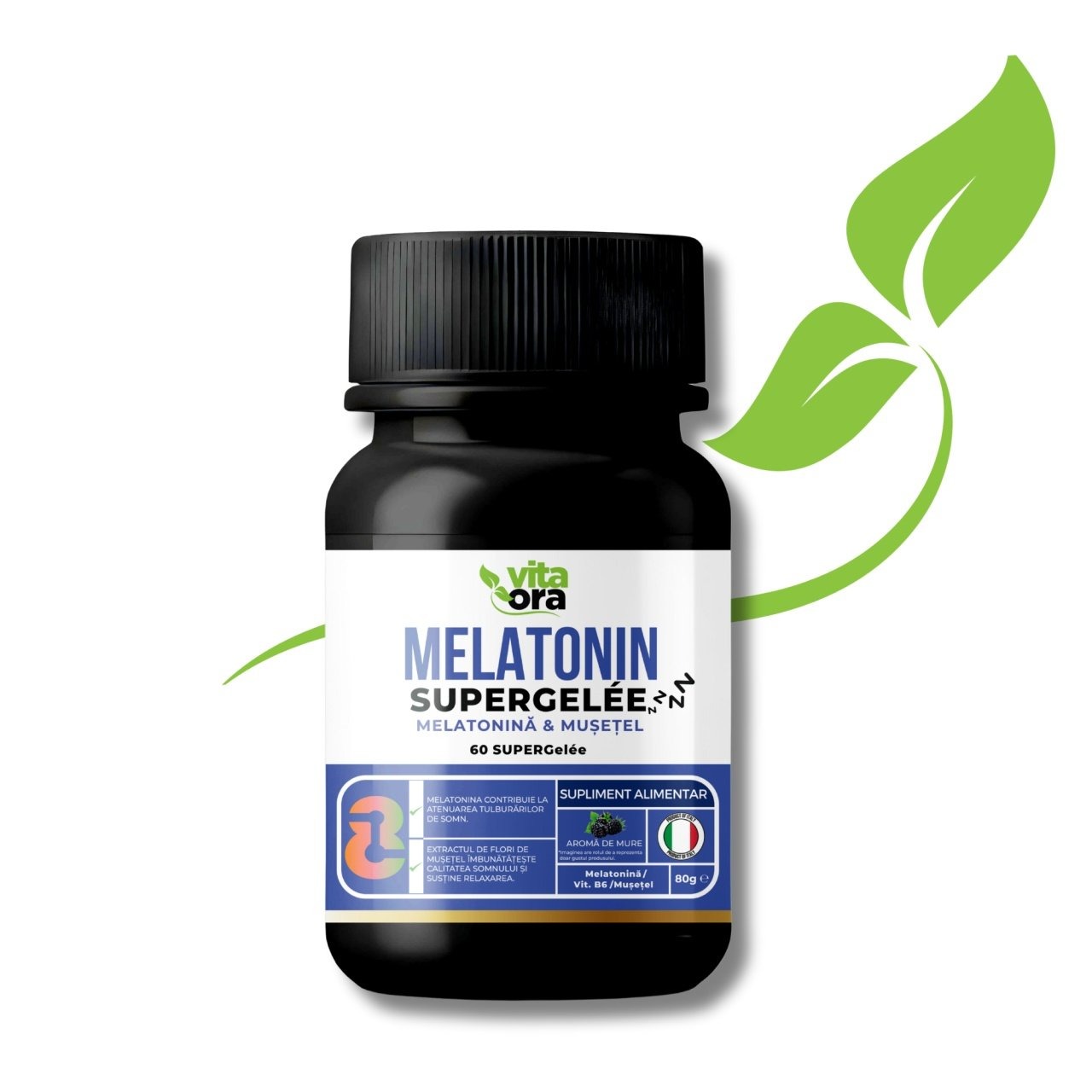 Supliment alimentar sub forma de jeleuri cu aroma de mure, special formulat pentru a sustine un somn odihnitor si relaxarea psihica.