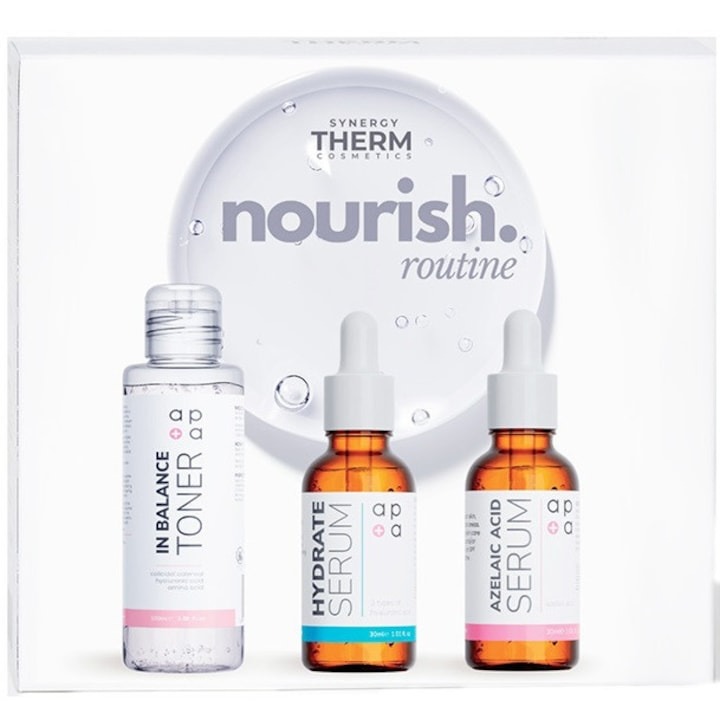 Synergy Therm Nourish Routine - Toner In Balance, 100 ml + Hydrate Serum, 30 ml + Serum cu acid azelaic, 30 ml, Synergy Therm
