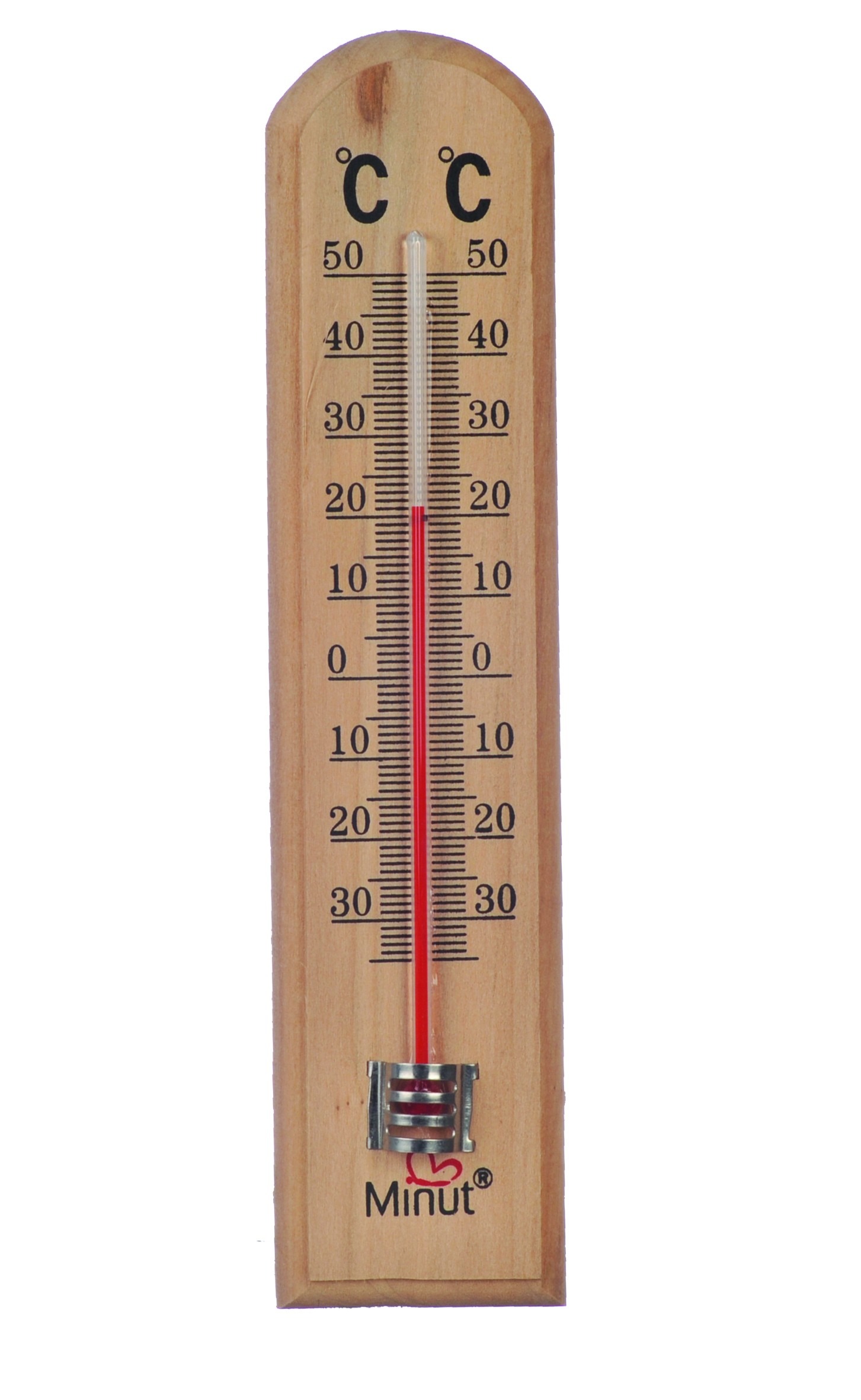 Suport din lemn, lichid termometric organic, capilar protejat.