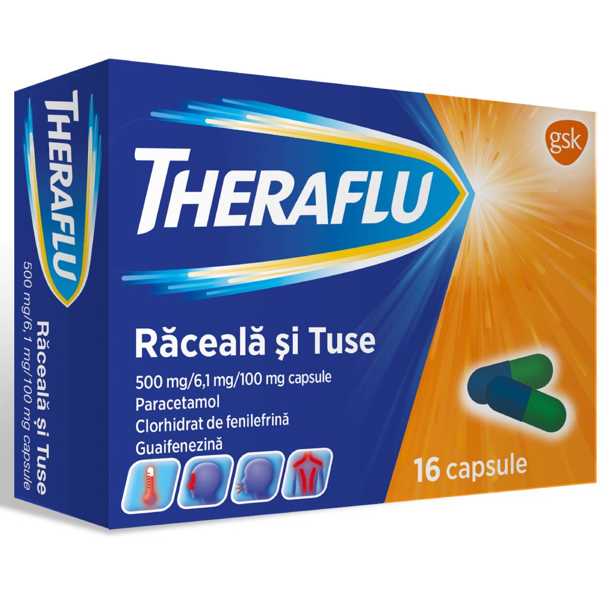 Theraflu raceala si tuse 500 mg/6.1 mg/100 mg, 16 capsule, Haleon