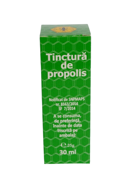 Ingrediente: propolis brut – 30 g, alcool etilic ad 100 ml