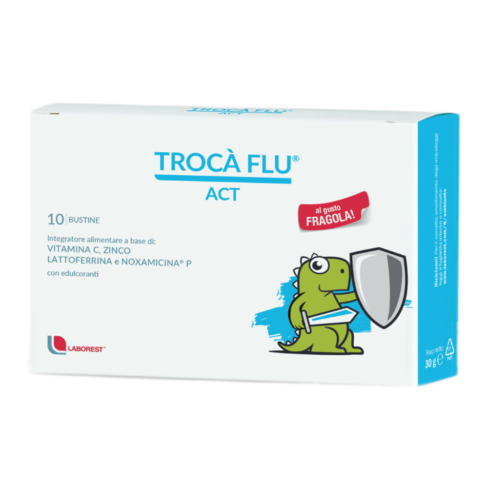 Troca Flu Act este un supliment alimentar pe baza de vitamina C, zinc, lactoferina si noxamicina® P.