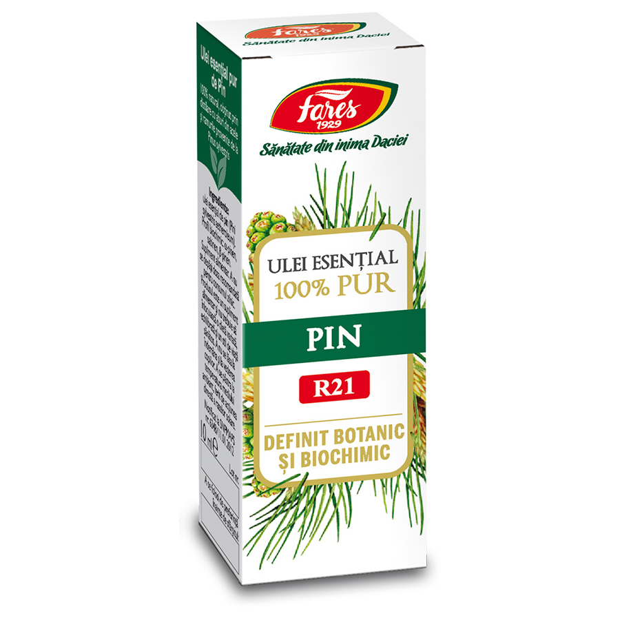 Uleiul esențial de pin R21 este recomandat în afecţiuni ale aparatului respirator: raceală, gripă, laringită, bronșită, sinuzită; infecții urinare; reumatism, artrite, crampe, astenie, congestie prostatică. Utilizat extern ajută în caz de oboseală mentală și stres, sprijină sănătatea articulațiilor.