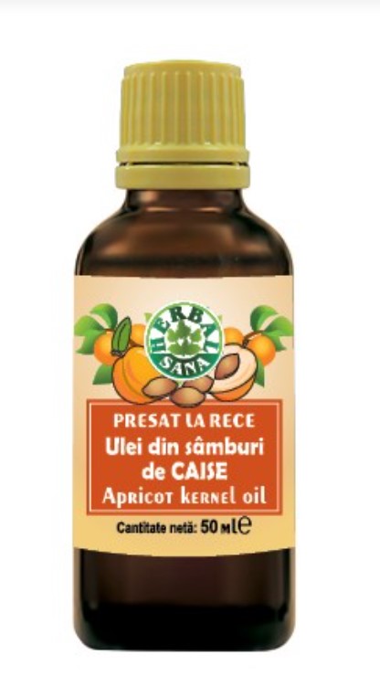 Uleiul din samburi de caise presat la rece, 50 ml, de la HerbalSana – Herbavit, este recomandat pentru pielea sensibila, uscata sau prematur imbatranita, ofera protectie impotriva razelor solare. intarzie aparitia efectelor imbatranirii. Regenereaza si revitalizeaza pielea, oferindu-i fermitate, inlatura ridurile. Este recomdat pentru toate tipurile de ten.