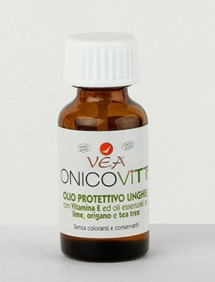 VEA ONICOVITT 20 ml, produs de Hulka, Italia, este un ulei protector pentru unghii pe baza de vitamina E si uleiuri esentiale (tei, oregano, arbore de ceai), cu proprietatea de a mentine in stare buna unghia si pielea periunghiala.