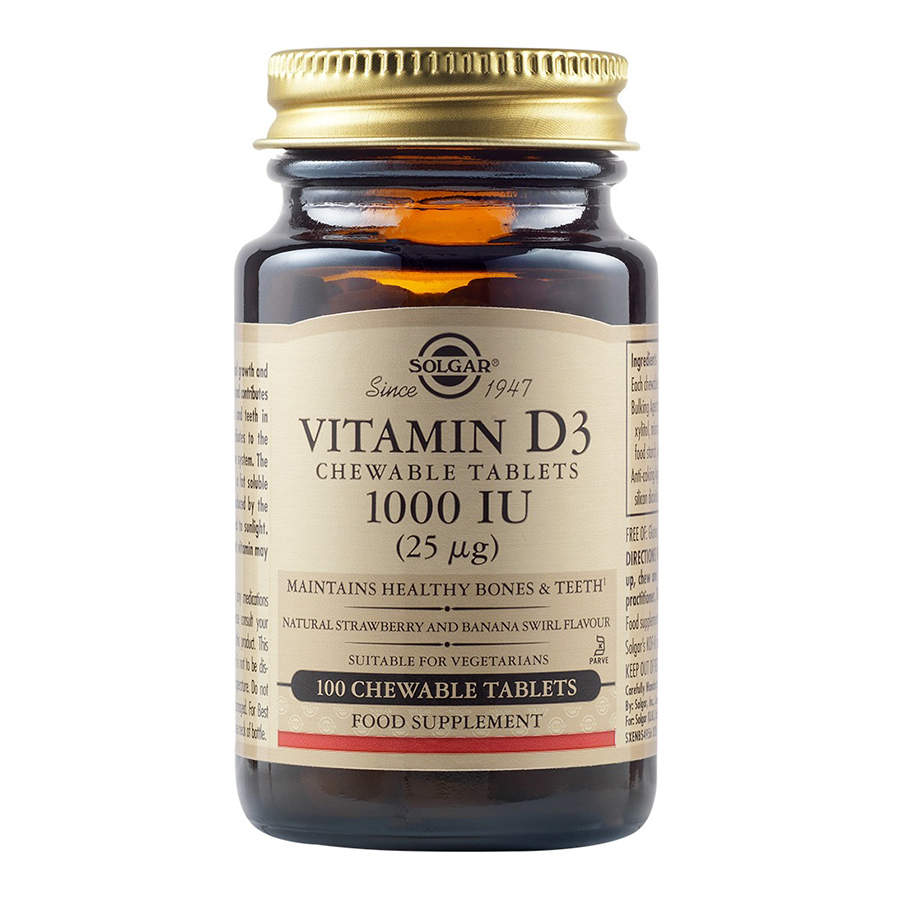 Vitamina D3 1000UI, 100 tablete masticabile, Solgar